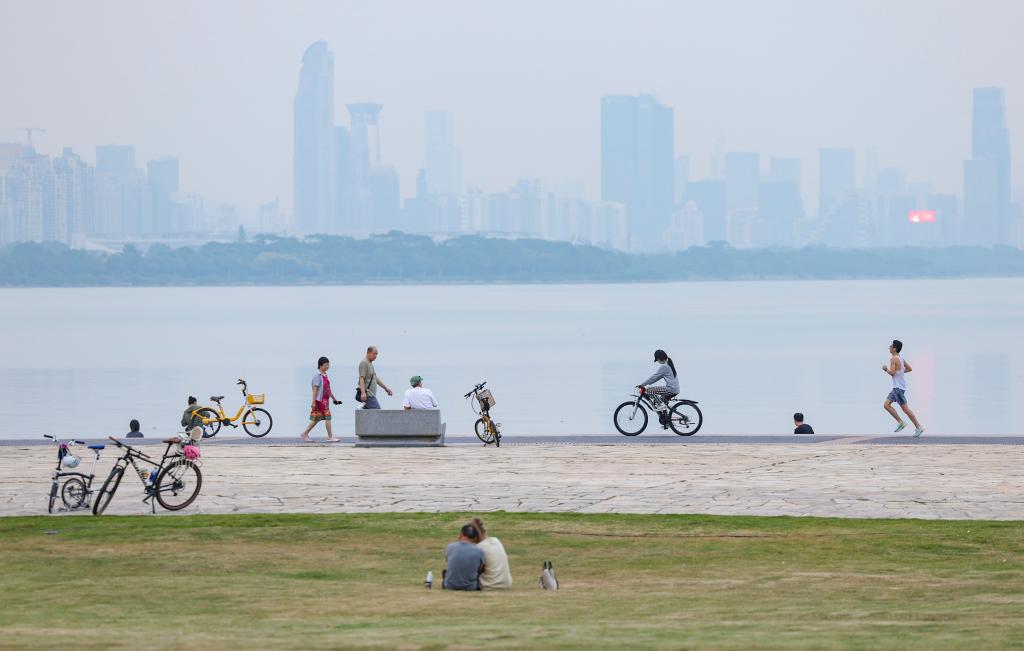 11月15日,參賽選手在田徑項(xiàng)目女子馬拉松比賽中經(jīng)過(guò)深圳灣口岸。