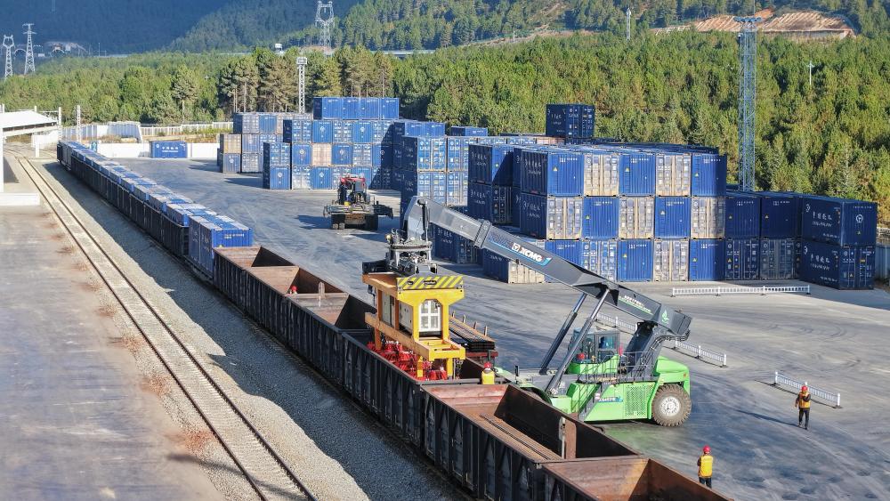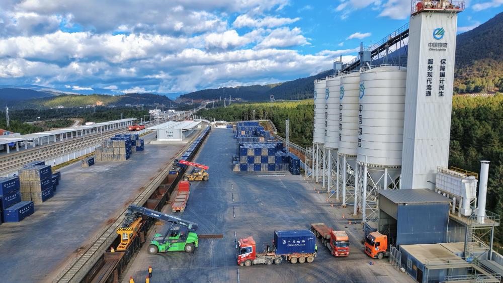 這是11月21日拍攝的云南迪慶藏族自治州小中甸站貨場(無人機(jī)照片)。