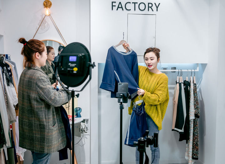 在常熟服裝城,商家在進(jìn)行網(wǎng)絡(luò)直播銷售(資料照片)。新華社發(fā)