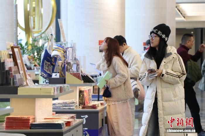 11月27日,游客在新疆博物館挑選“五星出東方利中國(guó)”系列文創(chuàng)產(chǎn)品?!∑埨^鵬 攝