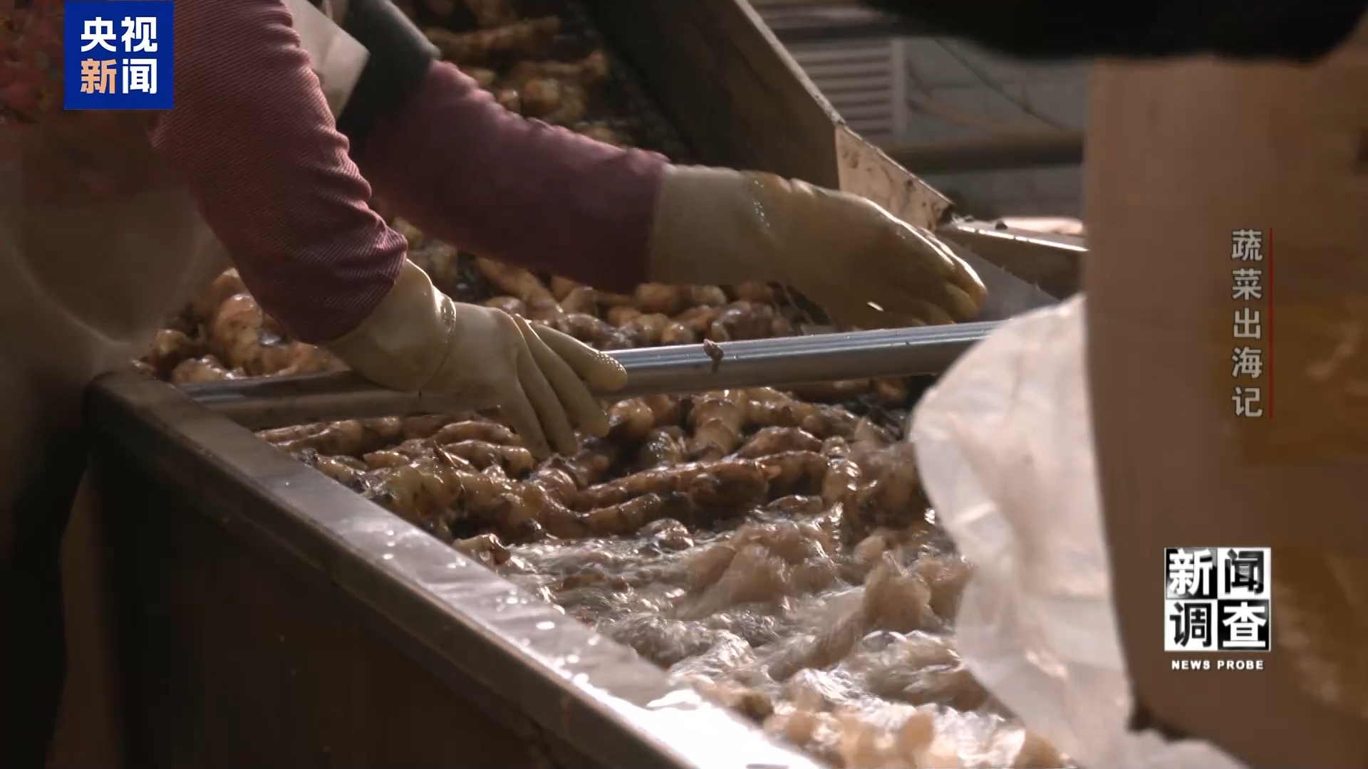 山東三濤食品有限公司副總經(jīng)理 劉鵬:我們一個(gè)月平均大約發(fā)100個(gè)貨柜,發(fā)往歐洲、美國(guó)、比利時(shí)、瑞士,美西生姜三分之一都是我們供應(yīng)的,也就是說我們?cè)诿牢鲹碛幸欢ǖ亩▋r(jià)權(quán)。