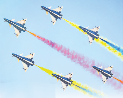 第十一屆空軍航空開放活動和長春航空展上,空軍八一飛行表演隊進行飛行表演。鄒新江攝