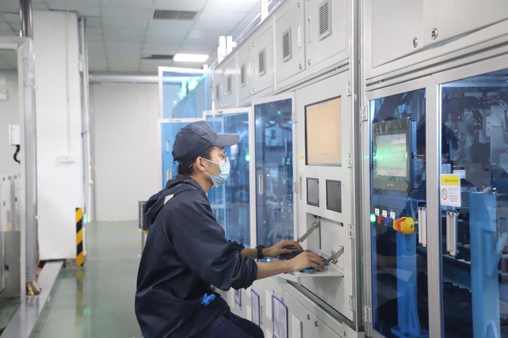 安徽池州高新區(qū),池州市駿智機(jī)電科技有限公司的生產(chǎn)車間里,一片片新能源動力電池頂蓋板平穩(wěn)“走”下生產(chǎn)線。