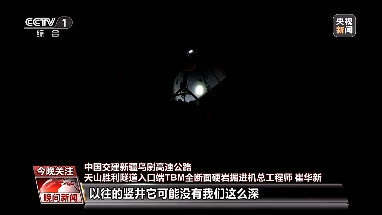 中國交建新疆烏尉高速公路天山勝利隧道入口端TBM全斷面硬巖掘進(jìn)機(jī)總工程師 崔華新:現(xiàn)在我們所處的位置,是我們豎向掘進(jìn)機(jī)開挖完成之后,我們豎井的最后一道工序也就是二襯。隨著我們的施工進(jìn)度不斷提高,我們經(jīng)歷黑暗的時(shí)間也是越來越短的。