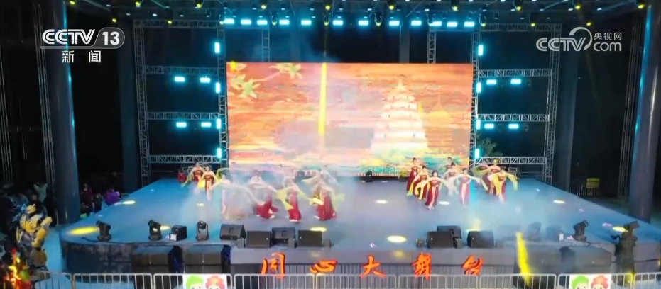 賞完了冰雕霧凇,大家可能已經聽到了現場熱鬧的音樂聲,此刻,迎接新年的預熱演出已經開場,演員們身著藏族服飾跳起歡快的鍋莊舞,舞蹈和歌聲中滿是對新年的喜悅與期待。