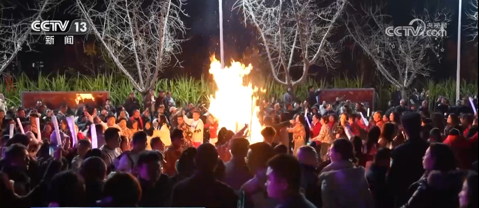 隨著絢爛的焰火騰空而起,當晚的活動也迎來了最高潮。演員們走下舞臺,和上千名觀眾一起圍繞篝火舞蹈狂歡,滿懷憧憬迎接新年。