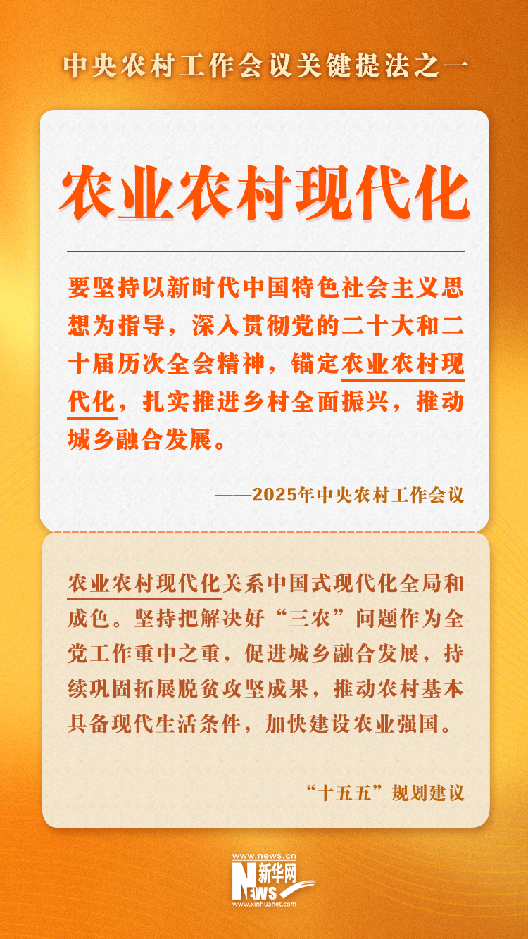 近日召開的中央農(nóng)村工作會議分析了當前“三農(nóng)”工作面臨的形勢和挑戰(zhàn),部署2026年“三農(nóng)”工作。為更好幫助網(wǎng)友理解會議精神,新華網(wǎng)梳理了會議提出的部分關鍵提法,一起來學習。