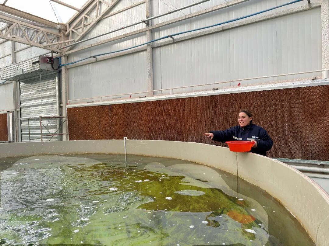 新疆疆漁兒農(nóng)業(yè)科技有限公司員工正在喂養(yǎng)餌料??κ驳貐^(qū)融媒體中心 記者李霖 攝
