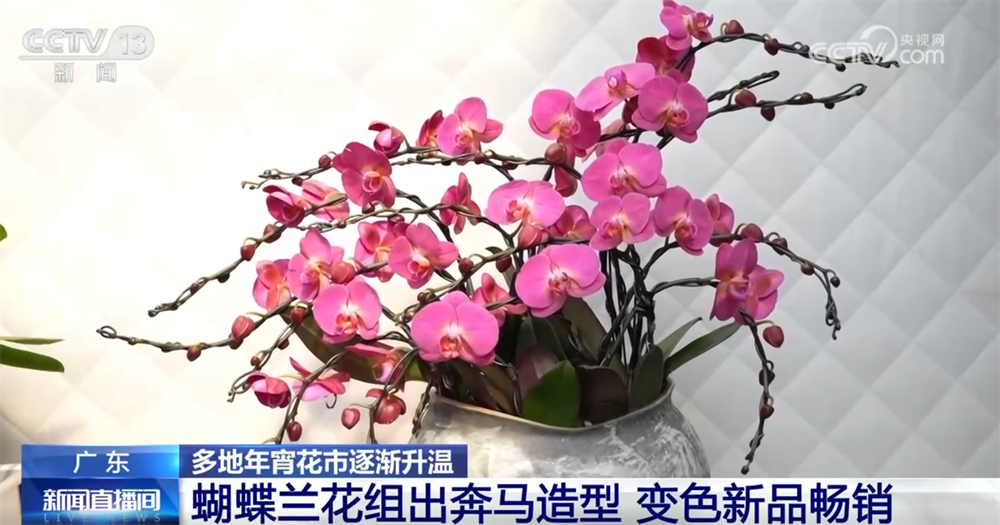 廣東:蝴蝶蘭花組出奔馬造型 變色新品暢銷(xiāo)