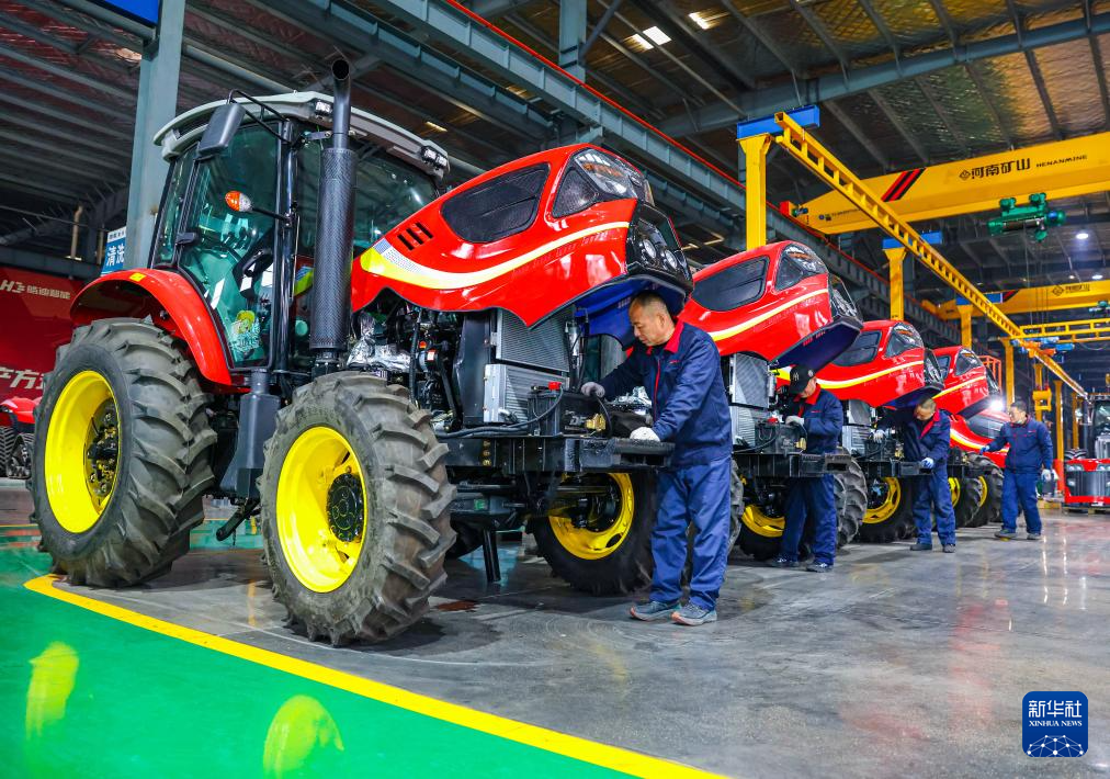1月19日,在江蘇省江都高新技術(shù)產(chǎn)業(yè)開發(fā)區(qū)的金世紀(江蘇)智能科技有限公司,工人對即將出售的拖拉機進行檢查。新華社發(fā)(任飛攝)