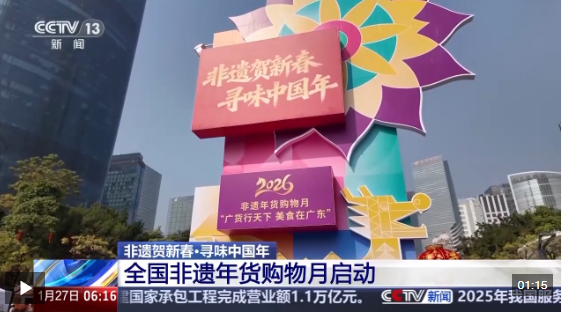2026年“非遺賀新春·尋味中國年”主題推廣暨非遺年貨購物月活動,26日在廣州啟動。匯集全國各地非遺好物的非遺市集,同步在廣州花城廣場拉開帷幕。