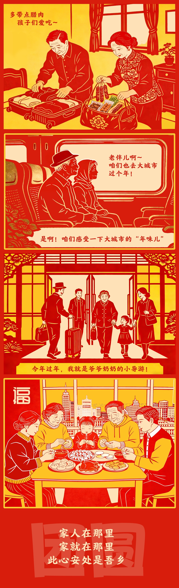 反向春運(yùn),遠(yuǎn)不止出行方式之變,它見(jiàn)證著中國(guó)人對(duì)“家”的理解,從故土坐標(biāo)轉(zhuǎn)向親情紐帶。變的,是團(tuán)圓路徑的智慧選擇;不變的,是對(duì)親情的永恒珍視。一個(gè)充滿(mǎn)活力的現(xiàn)代社會(huì),正以其包容與溫度,為每一種真摯奔赴鋪就道路。流動(dòng)中國(guó)的底色是團(tuán)圓,動(dòng)力是親情,終點(diǎn)永遠(yuǎn)是家之所在。(文字/泰軒萍 漫畫(huà)/泰軒萍 編輯/喬佳新)