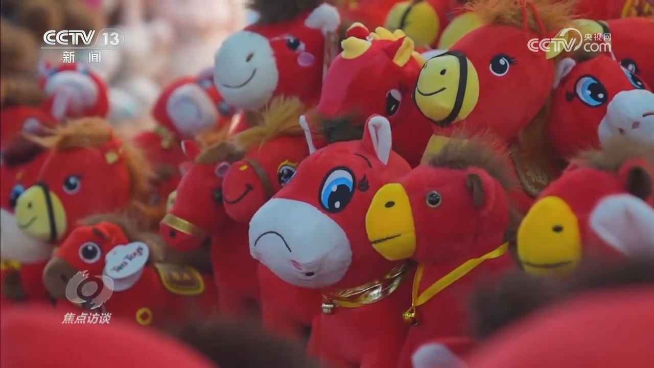 近年來,生肖文化、非遺主題的文創(chuàng)成為了新的過年硬通貨,給孩子帶上兩個(gè)馬年玩偶也是今年的潮流。在浙江義烏,今年春節(jié)年貨市場里,生肖經(jīng)濟(jì)日益火熱使得一款“哭哭馬”玩偶意外走紅??p反嘴的“錯(cuò)版小馬”委屈的表情不但沒有被消費(fèi)者嫌棄,反而因?yàn)樘峁┝霜?dú)特的情緒價(jià)值,很快就成了爆款。