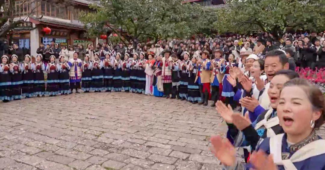 3月19日,云南麗江古城各族群眾熱情歡迎習(xí)近平總書記。