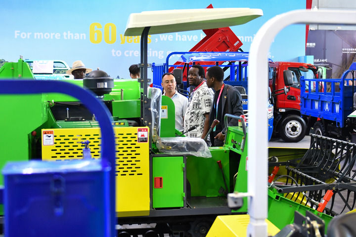 2025年6月14日,觀眾在長沙國際會(huì)展中心參觀農(nóng)機(jī)設(shè)備。6月12日至15日,第四屆中國—非洲經(jīng)貿(mào)博覽會(huì)在湖南長沙舉行。新華社記者 陳振海 攝