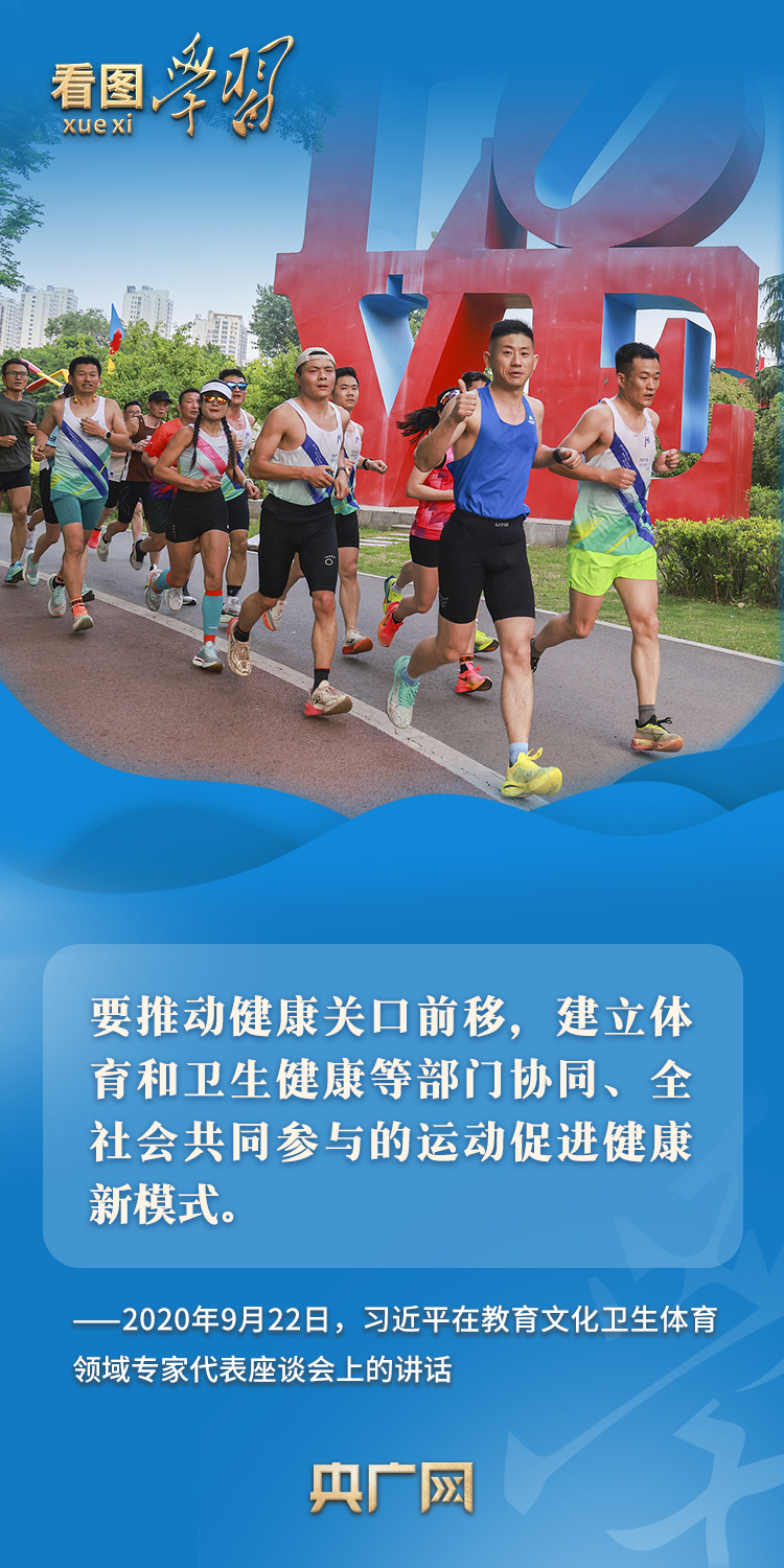 習(xí)近平總書記高度重視提高全民族身體素質(zhì)和生活質(zhì)量,強(qiáng)調(diào)要推動(dòng)全民健身和全民健康深度融合。作為全民健身的倡導(dǎo)者、踐行者,總書記曾形象地指出,“健康是幸福生活最重要的指標(biāo),健康是1,其他是后面的0,沒有1,再多的0也沒有意義”,要“構(gòu)建更高水平的全民健身公共服務(wù)體系”,以推動(dòng)全民健身高質(zhì)量發(fā)展,筑牢中國式現(xiàn)代化健康之基。