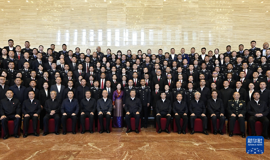 8月20日下午,中共中央總書記、國(guó)家主席、中央軍委主席習(xí)近平在拉薩親切接見(jiàn)西藏自治區(qū)政法干警代表,并同大家合影留念。新華社記者 殷博古 攝