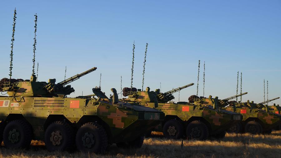 2021年9月20日,在俄羅斯奧倫堡州東古茲靶場舉行的“和平使命-2021”上海合作組織聯(lián)合反恐軍事演習開幕式上,中方參演部隊接受檢閱。新華社記者梅世雄攝