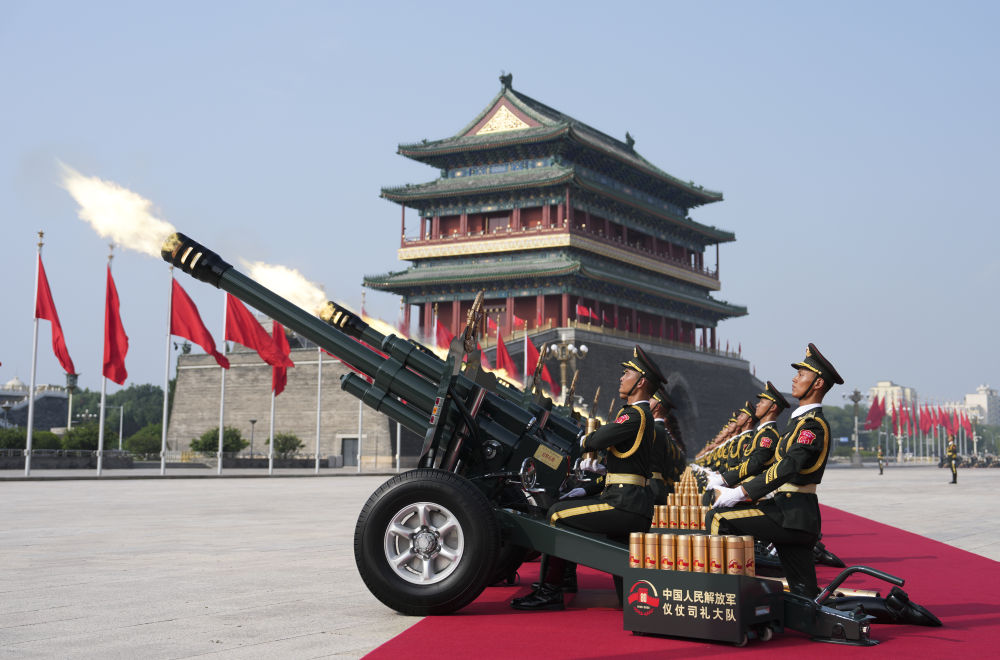 2025年9月3日,紀念中國人民抗日戰(zhàn)爭暨世界反法西斯戰(zhàn)爭勝利80周年大會在北京隆重舉行。這是禮炮在天安門廣場鳴響。