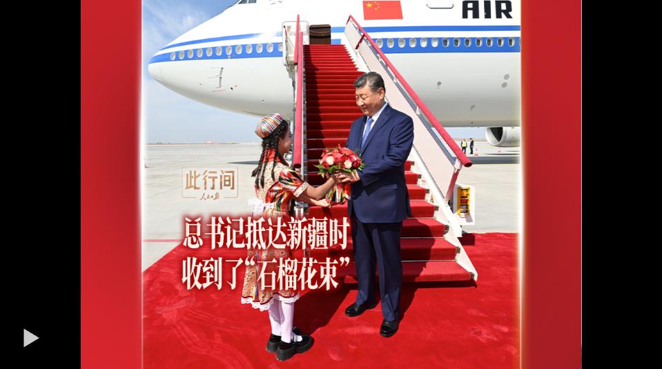 習近平率中央代表團23日下午乘專機抵達烏魯木齊,出席新疆維吾爾自治區(qū)成立70周年慶祝活動,新疆各族群眾在機場熱烈歡迎??倳浭盏降幕ㄊ?,裝點了美麗的石榴。如今,“石榴籽”的妙喻為人熟知,民族團結(jié)觀念深入人心。