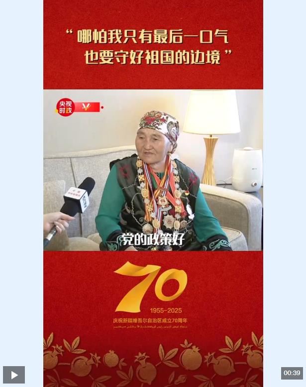 “人民楷模”國(guó)家榮譽(yù)稱號(hào)獲得者布茹瑪汗·毛勒朵表達(dá)了她最想對(duì)總書記說(shuō)的話:“我從19歲開(kāi)始守邊護(hù)邊,哪怕我只有最后一口氣,也要守好祖國(guó)的邊境。”