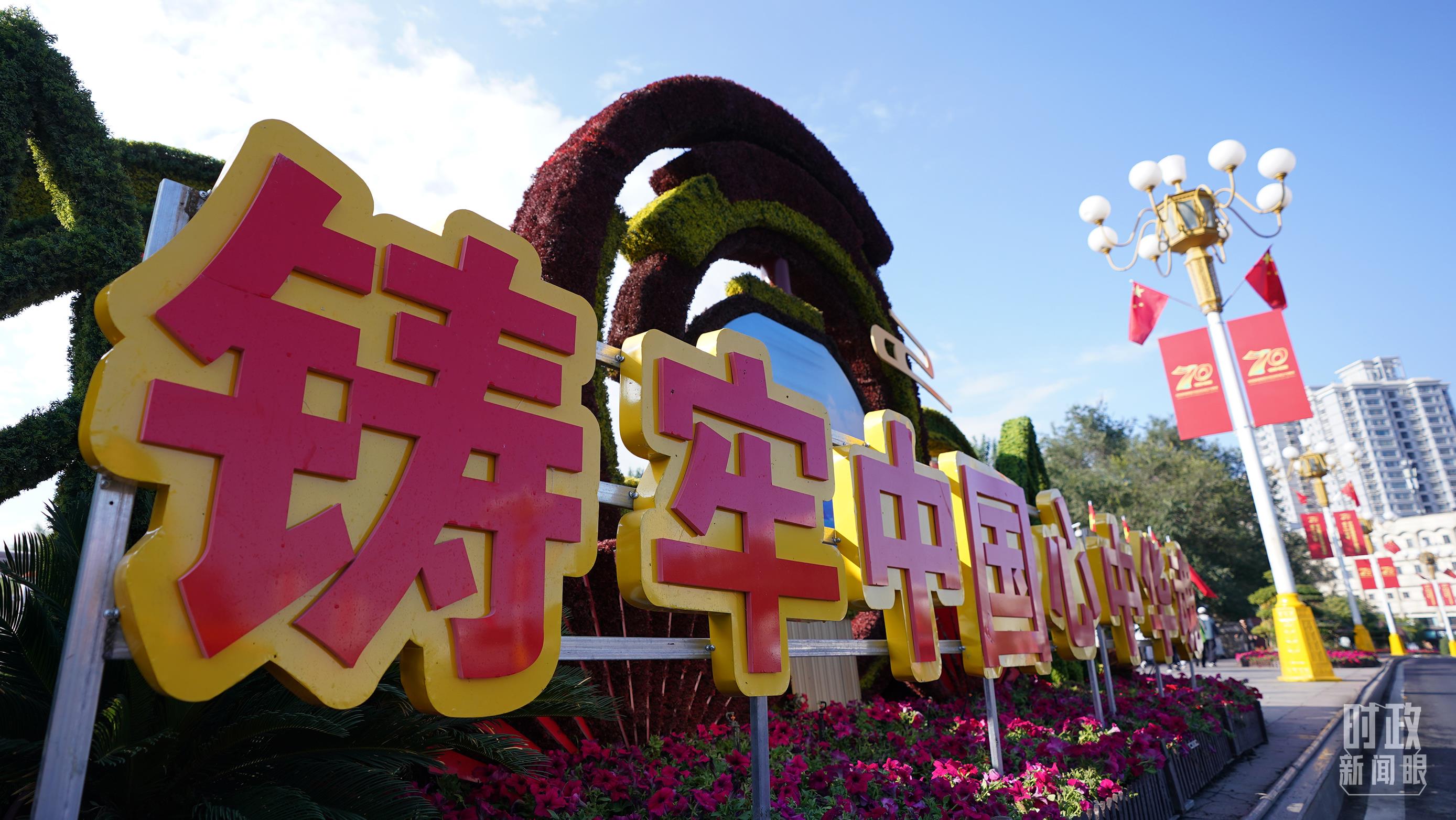烏魯木齊街頭的花壇。(總臺記者李晉拍攝)
