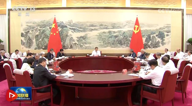 中共中央政治局常委李強、王滬寧、蔡奇、丁薛祥出席座談會。
