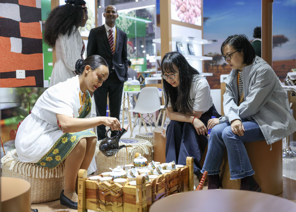 2025年11月7日,人們在第八屆進(jìn)博會國家展埃塞俄比亞館品嘗咖啡。本屆進(jìn)博會上,共有來自123個共建“一帶一路”國家的企業(yè)參展,同比增長23.1%;來自最不發(fā)達(dá)國家的企業(yè)達(dá)163家,同比增長23.5%。自首屆起,進(jìn)博會便為最不發(fā)達(dá)國家提供免費標(biāo)準(zhǔn)展位。本屆進(jìn)博會首次為最不發(fā)達(dá)國家產(chǎn)品打造專區(qū),擴容非洲產(chǎn)品專區(qū),支持非洲建交國用足用好100%稅目產(chǎn)品零關(guān)稅政策,非洲企業(yè)參展數(shù)量同比增長80%。