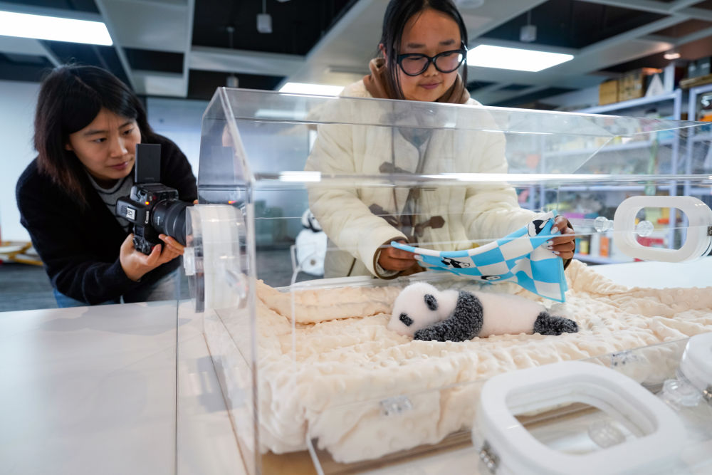 2024年11月20日,在位于四川省成都市的“熊貓工廠”總部,工作人員在為22日齡新生大熊貓幼崽高仿真玩偶產品拍攝短視頻。依托我國傳統(tǒng)非遺裘皮制作技藝,以不同年齡段的“和花”“萌蘭”“香香”“福寶”等“網紅”大熊貓為原型,運用3D建模等技術開發(fā)出高仿真、超仿真玩偶,當?shù)仄髽I(yè)已在全球50多個國家和地區(qū)累計銷售超過5萬只定制仿真大熊貓,也在短短幾年內成長為年營收破千萬元的企業(yè)。