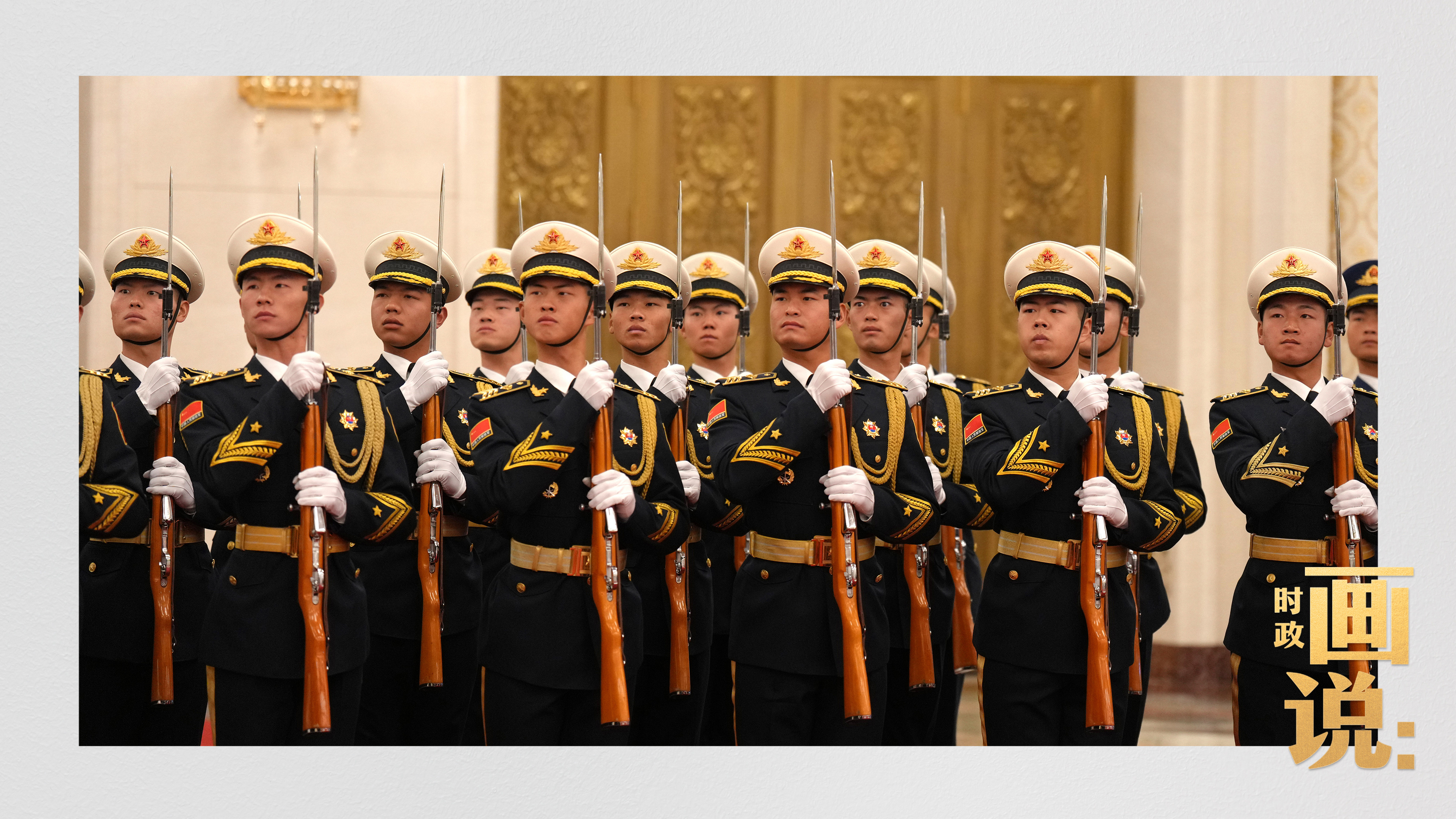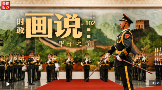 △馬克龍在習(xí)近平陪同下檢閱中國人民解放軍儀仗隊并觀看分列式