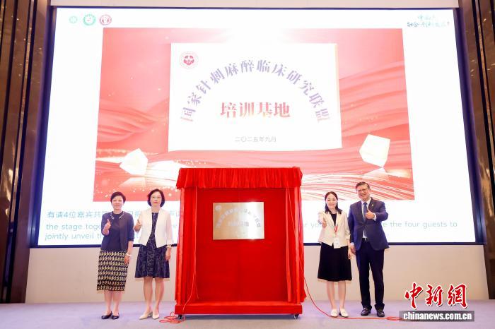 國(guó)家針刺麻醉臨床研究聯(lián)盟培訓(xùn)基地27日在滬揭牌。(岳陽(yáng)醫(yī)院供圖)