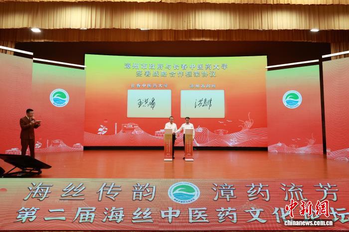 圖為當天漳州市政府與長春中醫(yī)藥大學簽署戰(zhàn)略合作框架協(xié)議。郭濤 攝