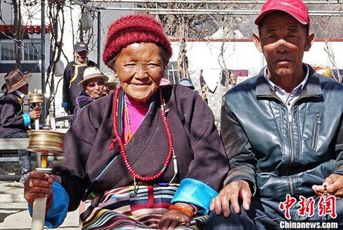 午后,68歲的藏族老人妮妮與“老伴兒”歐珠一起在西藏官方所建的“銀發(fā)暖巢”院內(nèi)搖轉(zhuǎn)經(jīng)筒、捻念珠,享受冬日暖陽。遠(yuǎn)處,老人們?nèi)宄扇旱赝嬷厥谨蛔?,精神矍鑠。