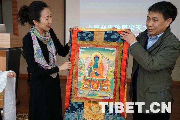 圖為北京藏醫(yī)院和中國科學(xué)院國家天文臺(tái)雙方互贈(zèng)文化制品、圖書。攝影:李偉 魯星杞
