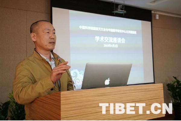 圖為青海省玉樹藏族自治州藏醫(yī)藥研究所格列嘉措副所長作《關(guān)于藏族天文歷算的學(xué)習(xí)及思考》報(bào)告。攝影:李偉 魯星杞