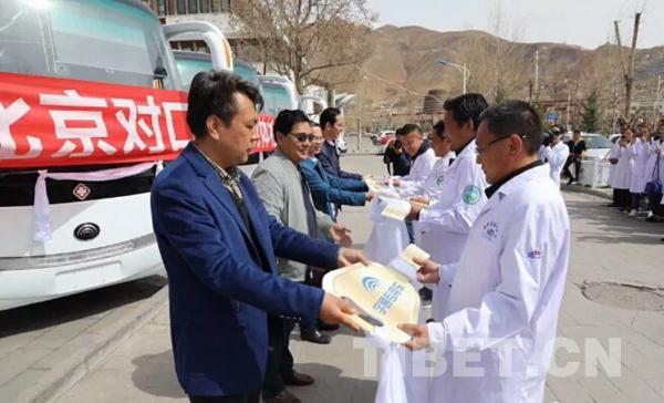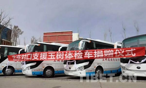 圖為北京對口支援玉樹體檢車捐贈(zèng)儀式現(xiàn)場