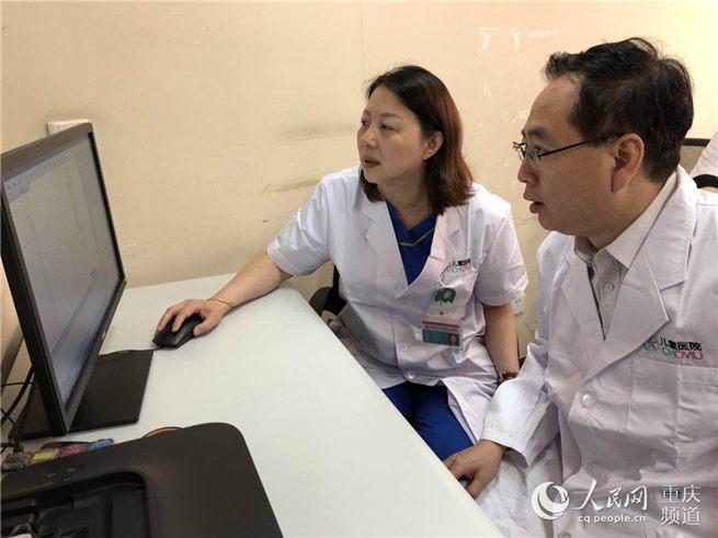 重慶醫(yī)科大學(xué)附屬兒童醫(yī)院心電生理診斷中心,專家實時分析央措的心電圖報告。