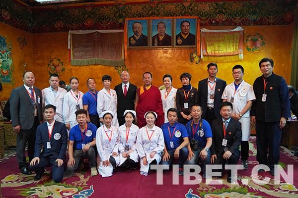 圖為十一世班禪與愛心醫(yī)療隊合影。攝影:王淑