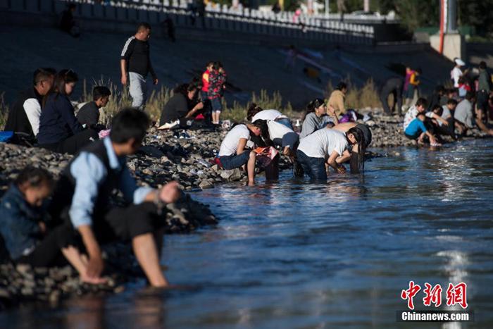 圖為沐浴節(jié)期間,藏族民眾在拉薩河邊沐浴。圖片來源:中新網(wǎng),攝影:何蓬磊