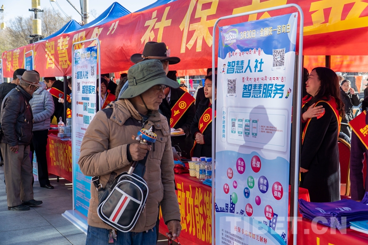 圖為西藏自治區(qū)人力資源和社會保障廳舉行的社保卡咨詢宣傳活動現(xiàn)場。