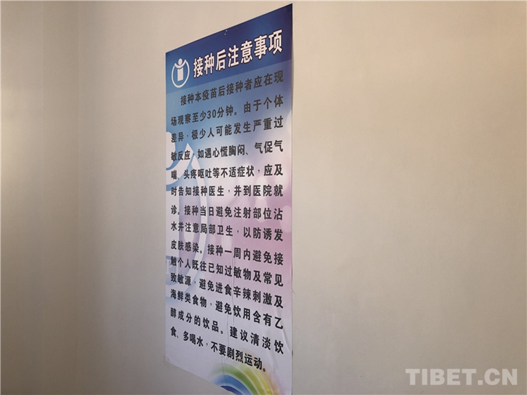 圖為爐霍縣在接種點張貼的新冠疫苗接種后注意事項海報