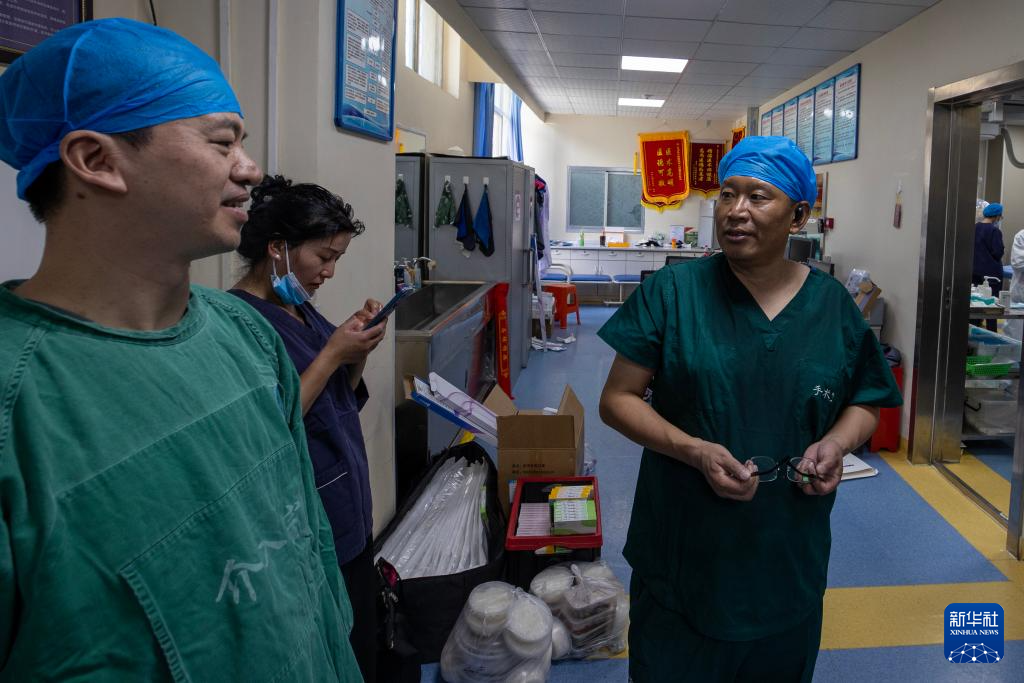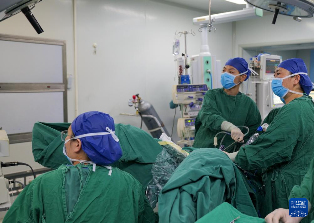 北京大學人民醫(yī)院第十批援藏婦科醫(yī)生張果(中)與西藏自治區(qū)人民醫(yī)院醫(yī)生李芳(左)一起為患者做手術(8月4日攝)。新華社發(fā)(柑丹鴦琦攝)