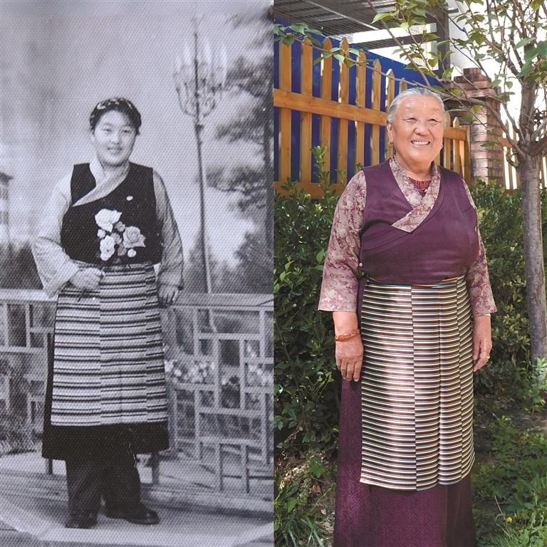 圖①:28歲的次仁卓瑪在河南進修時留影。 (由受訪者提供)圖②:79歲的次仁卓瑪在拉薩新居留影。記者 嘎娃白瑪 丹增朗賽 攝