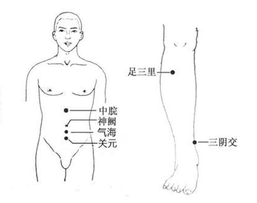位于腹部正中線,臍下一寸五??煞乐蜗赂共刻弁?、大便不通、泄痢不止,遺尿、遺精、陽痿、滑精,閉經(jīng)、崩漏、帶下、子宮脫垂,中風(fēng)脫證、脘腹脹痛、氣喘、疝氣,失眠、神經(jīng)衰弱、腸炎等。
