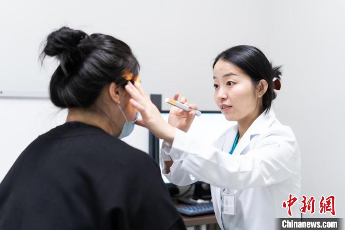 張雯麗醫(yī)生為患者檢查。(彭倩 攝)