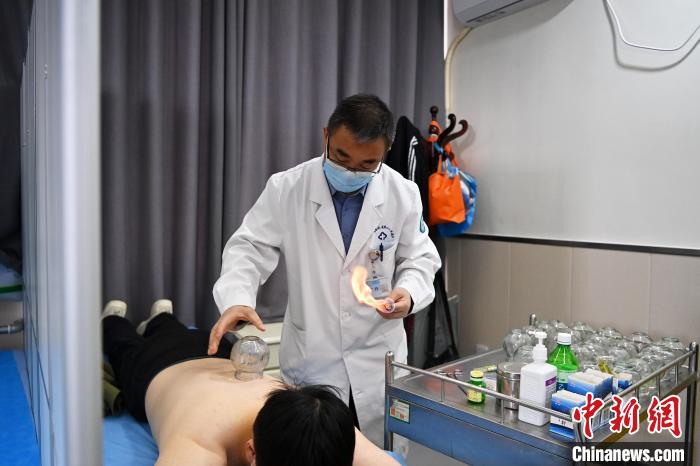 3月20日,甘肅省第二人民醫(yī)院減重門診醫(yī)生通過拔火罐給患者進行減重治療?!【琶赖┰?攝