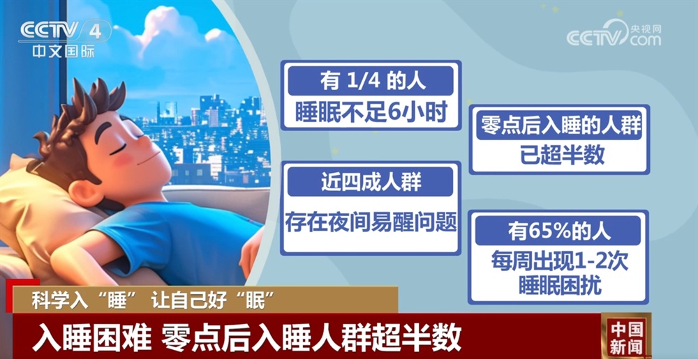 調查數(shù)據(jù)顯示,有1/4的人睡眠不足6小時,零點后入睡的人群已超半數(shù),近四成人群存在夜間易醒問題,有65%的人每周出現(xiàn)1—2次睡眠困擾。調查顯示,“00后”的大學生群體晚睡晚起成常態(tài),僅有2成左右的大學生零點前入睡,1/4的大學生凌晨2點后才入睡。
