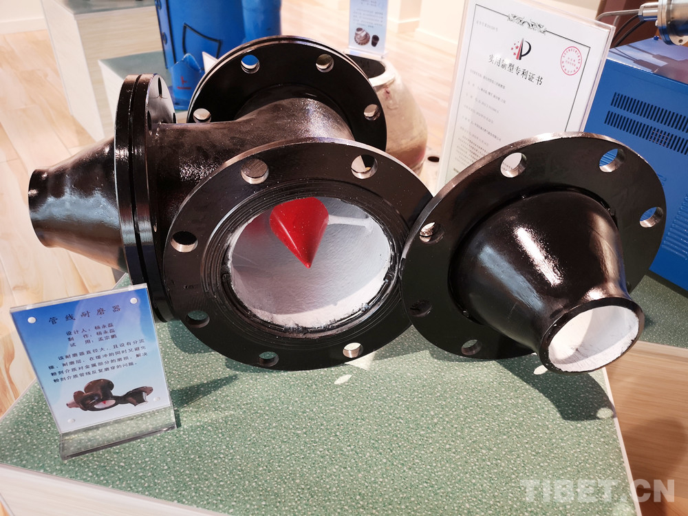 圖為楊永磊設(shè)計(jì)的管線(xiàn)耐磨器,直徑大,且設(shè)有分流錐、耐磨層,解決了粉劑介質(zhì)管線(xiàn)反復(fù)磨穿的問(wèn)題 攝影:李元梅