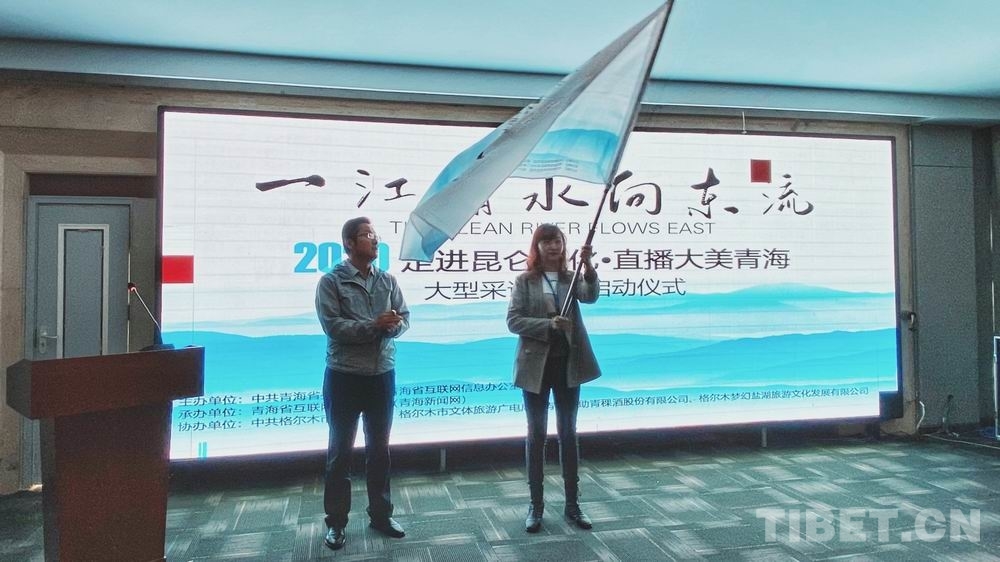 圖為“一江清水向東流——2020走進昆侖文化 直播大美青海”大型采訪活動啟動儀式授旗現(xiàn)場 青海新聞網(wǎng)供圖