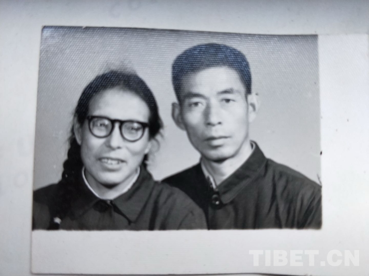 △圖為于1960年藏歷新年結(jié)婚的劉玉興(男)與四郎值瑪(女)。他們都曾是西藏自治區(qū)昌都市八宿縣白馬公路養(yǎng)護(hù)段工人。他們的兒子劉劍于1961年出生并一直在西藏自治區(qū)工作,直到2014年退休。(圖片由劉劍提供)